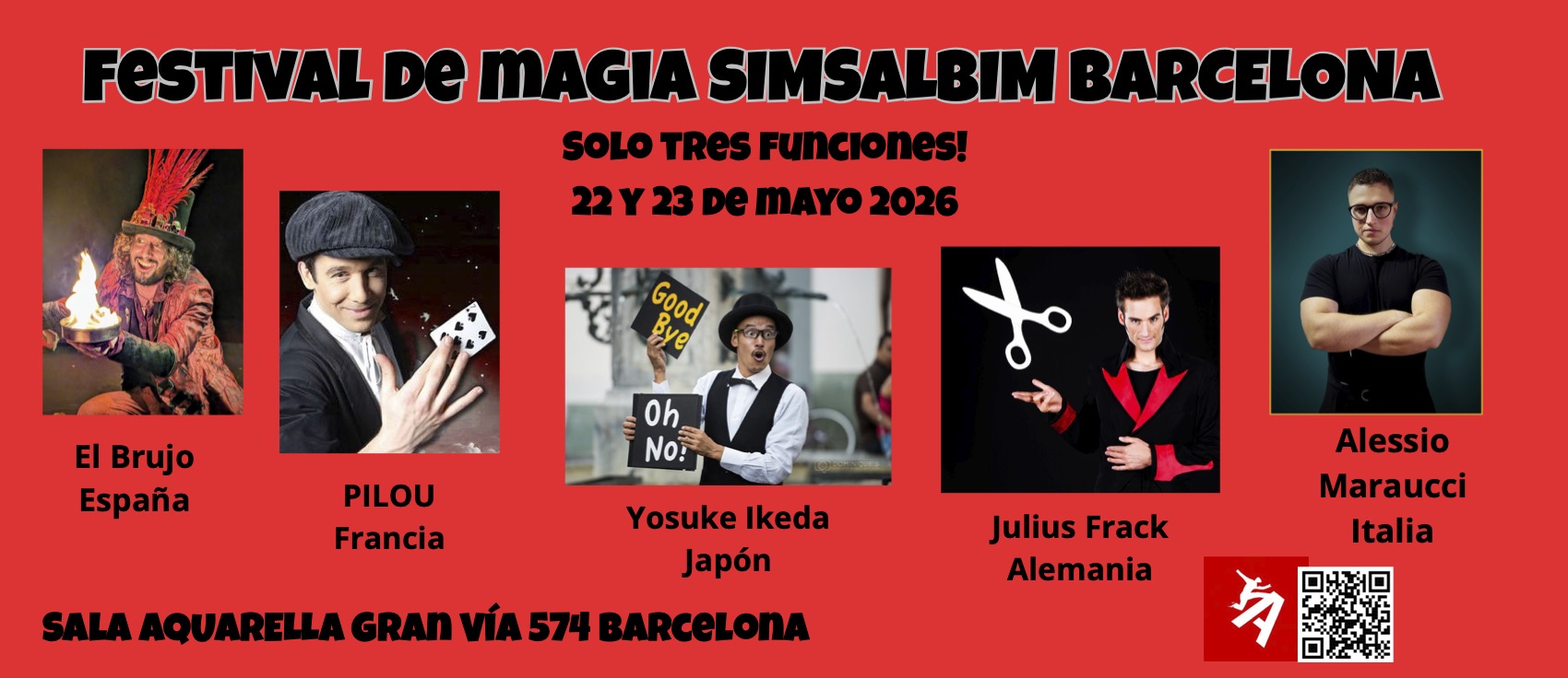 El Festival Internacional de Magia SIMSALABIM BARCELONA es un evento cultural dedicado al Ilusionismo y la magia escénica reuniendo a artistas nacionales e internacionales en un encuentro único entre Arte, Teatro y asombro.
